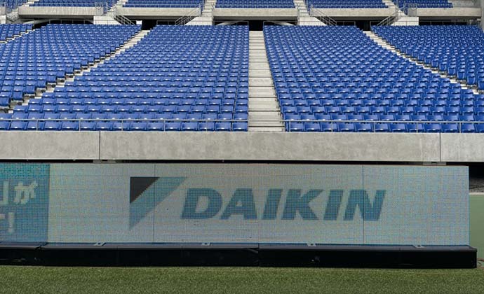 試合中、両ゴール裏にあるLED看板に、DAIKINロゴが表示されます。