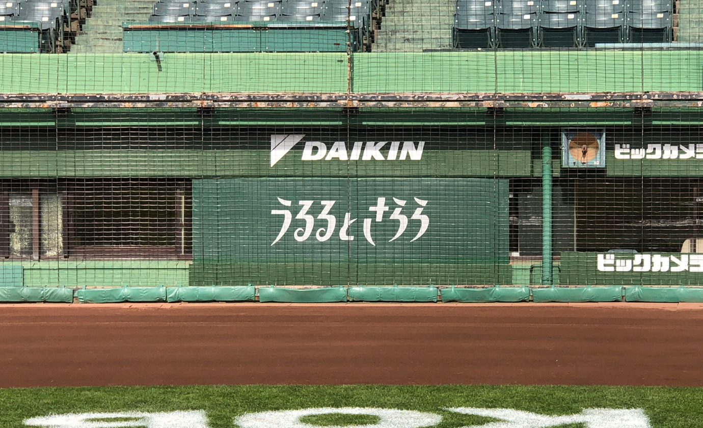 バックネット裏に常時、DAIKINロゴや商品名が表示されています。