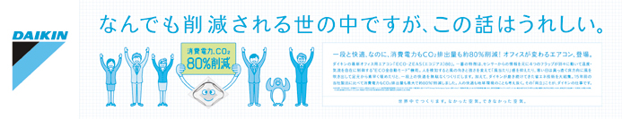 一段と快適、なのに、消費電力もCO2排出量も約80%削減!オフィスが変わるエアコン、登場。