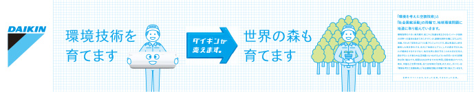 ダイキンは「環境を考えた空調技術」と「社会貢献活動」の両輪で取り組んでいきます。