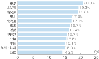 最も空気を意識している地域は「東京」。次いで「北関東」「南関東」が続きました。