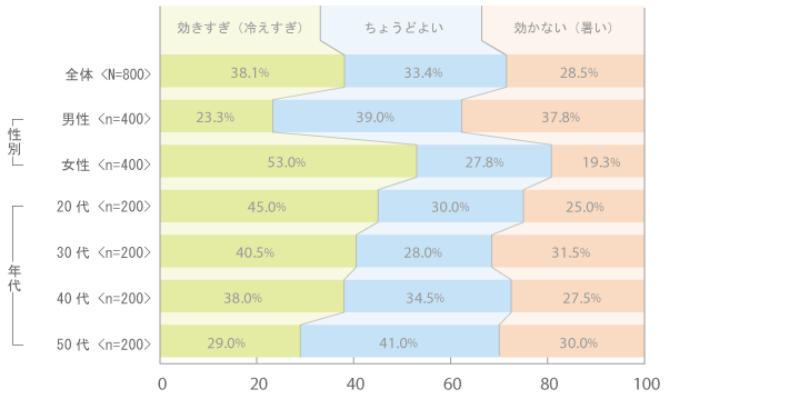 どよい」(33.4%)を上回っています。その一方で「効かない(暑い・・・