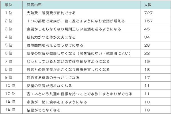 家庭でのウォームビズが生活に及ぼす良い影響ランキング