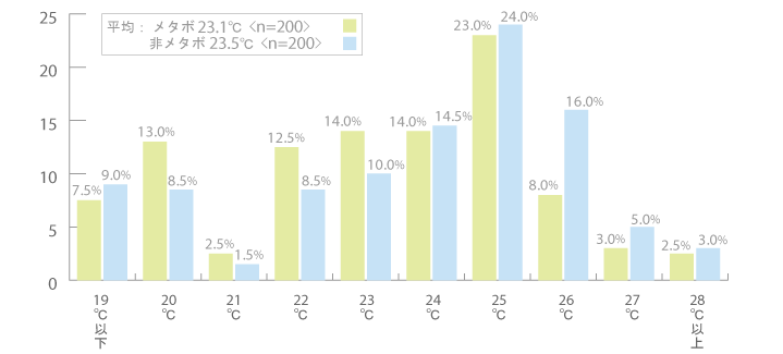 でない人は「26℃」(16.0%)などがメタボな人を上回っています。・・・