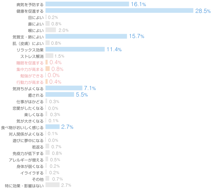 「きれいな空気」は私たちにどのような効果・影響を与えると思うかを聞きました。美容・健康の空気