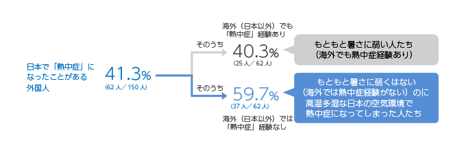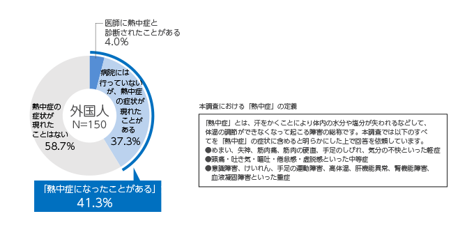東京の夏で「熱中症」と思しき症状が現れたことがある外国人は約4割