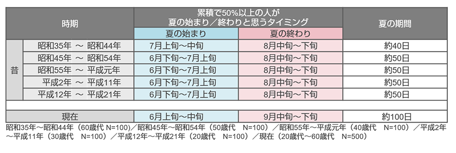 過去と現在で夏の期間の長さに違いがあるかを聞きました。空気と環境