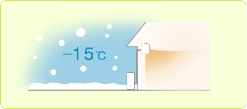 カナダなど高緯度の寒冷地域では、冬季には外気温が-15℃~-20℃まで低下します。そのためダイキンでは、外気温-15℃程度までトラブルなく運転できるエアコンの提供を行っています。