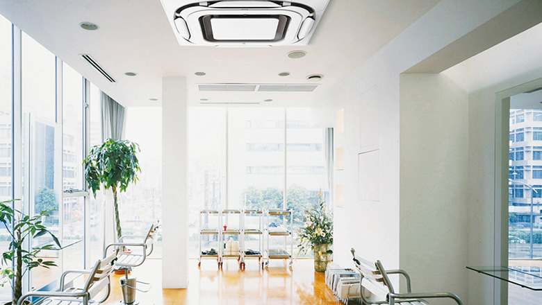 ダイキンの業務用カセット型エアコンは、 全方向 から風が吹き出すようにデザインし、それぞれ風向きを設定することができます。人のいる場所を検知し、風あたりを軽減するセンサーも搭載し、複数台使用する場合でも1台ごとに気流設定が可能です。空調の基本的とも言える、快適な気流機能を追求することで、エアコンへの要望の中でもっとも多い「一定の場所や人だけが暑い(寒い)、風があたる」といった課題を解決して快適な空調空間を提供しています。
