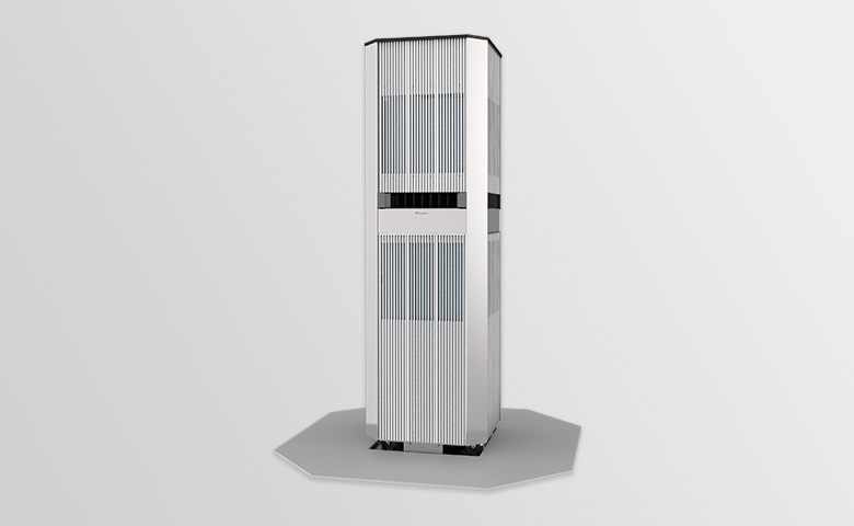 屋外用エアコンという特性上、真夏の炎天下という厳しい環境でも安全に使える仕様でなければなりません。そこにデザイン性を組み合わせて両立させるというところには苦心しました。安全性や耐久性の観点から、金属素材で構成する事が必須という条件下でカフェテラスの座席近くや駅のホームといった、人がくつろいだり多くの人が行き交う空間に合うデザインにする必要がありました。アウタータワーはエアコンの室内機と室外機が一体化した構造のため、外気を取り込む為に広い開口が必要です。性能の効率を優先して単純に板金の外装カバーに大きな穴を開けただけでは内部構造がむき出しになって、デザイン性や安全性に欠けてしまいます。そこで開口と目隠しの役割を両立させる為に整然と縦に通った立体的なアルミの格子を全体に施すデザインにしました。