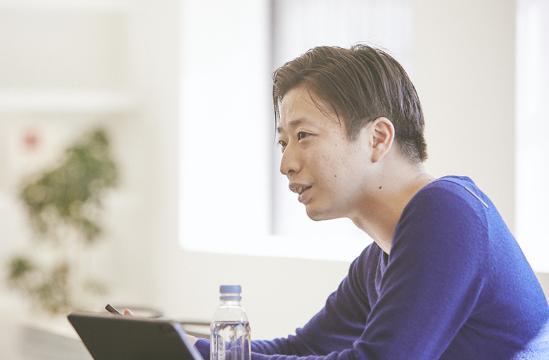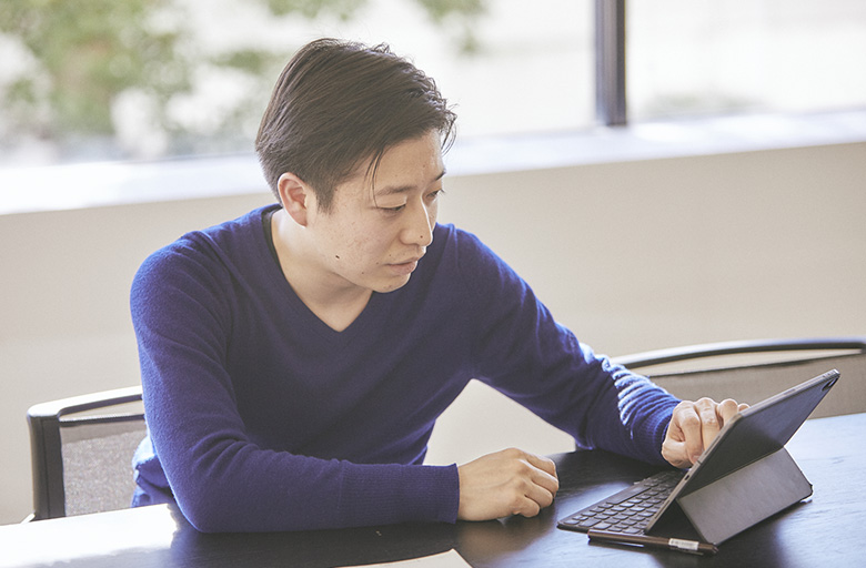東京・表参道にあるTakramのスタジオ「Takram Omotesando」は、温かみのある木調の床と、壁に配されたステンレスの質感が、シンプルで心地よい空間。大きな窓から明るい光が差し込む部屋へ、タブレットとメモを携え、笑顔でやって来た渡邉さん。話し始めると、このサイトのタイトルに興味を持たれていたようで──。