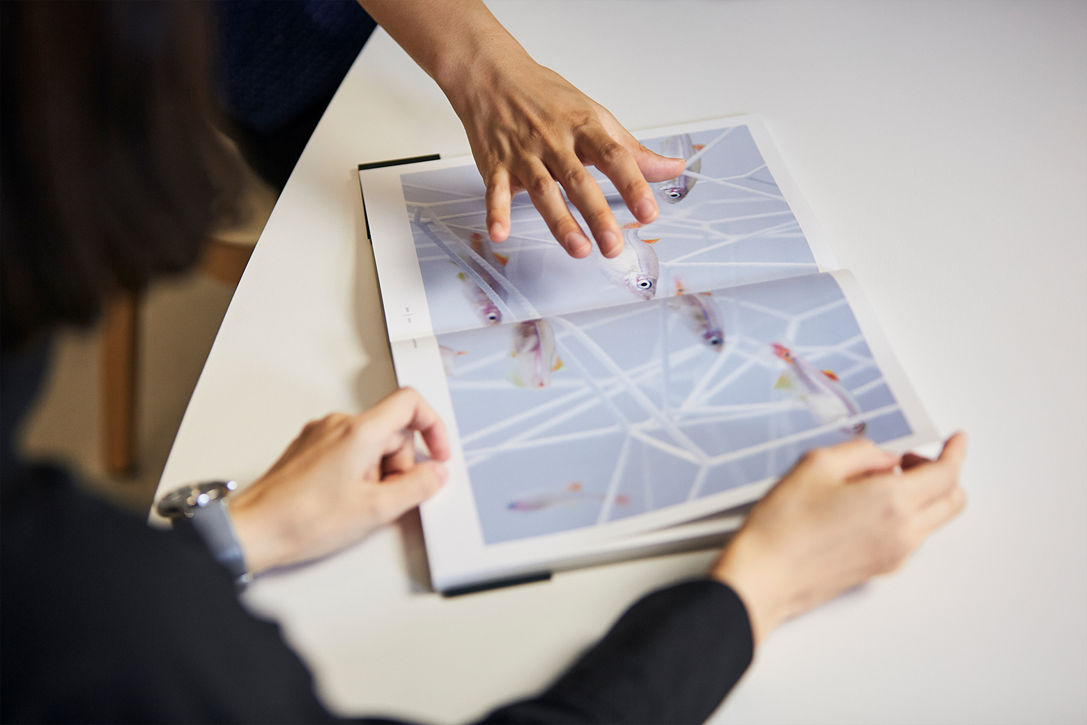 「waterscape」や「動紙」など独創的な作品づくりで知られるデザイナーの三澤遥さん。印刷物やwebといったグラフィックだけでなく、プロダクトや展覧会などさまざまなプロジェクトを手がけています。印象的なのは、案件ごとに別の人物がデザインしたのかと思えるほど表現豊かであること。そんな三澤さんの作品に魅了されたというダイキンのプロダクトデザイナー・東山桐子がデザインや作品の生まれるプロセスについて対話を重ねました。