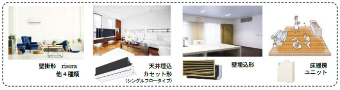 本製品は、狭い場所に設置することを想定し、室内機を従来の住宅用の天井埋込カセット形に比べて化粧パネルを約68%※2小型化した業界最小サイズを実現しました。また、非居室の利用実態に応じた使い勝手の良さを充実させました。さらに、1台の室外機に『ココタス』だけでなく、壁掛形・天井埋込カセット形の室内機や床暖房ユニットなど最大で合計3台まで接続でき、室外機の数を最小限に抑えられるため住宅の外観もそこないません。住宅内の温度のバリアフリーと省エネ性を両立しながら、多様化するライフスタイルに応じて、住空間を個性豊かに変える新しい発想のエアコンです。