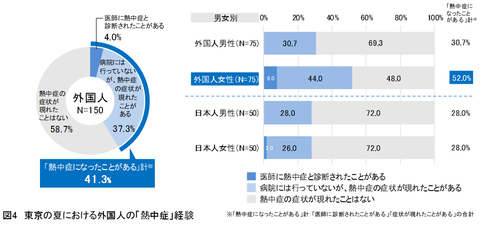 東京の夏で「熱中症」と思しき症状が現れたことがある外国人は約4割(41.3%)