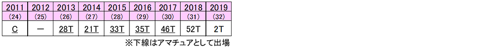 8年連続9回目の出場 ベストフィニッシュ 2位タイ