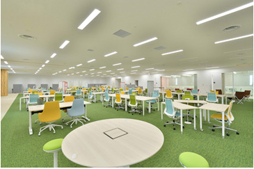 統合の場であるIPCは、従業員が部門横断で知恵を出し合って協創し、働きの質と生産性の向上を実現する環境をめざしています。利用者の健康、快適の維持・増進を支援する建物の仕様、性能、取組みを評価する「CASBEEウェルネスオフィス評価認証」において、工場内オフィスとして国内で初めて最高ランクのSランクを取得しました。従業員の「健康・快適」を実現しながら、新たな価値を創造するものづくりをめざします。