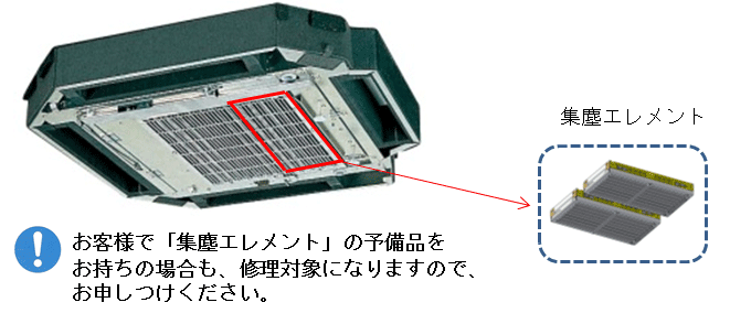 【空気清浄ユニットの不具合箇所の無償点検・修理内容】