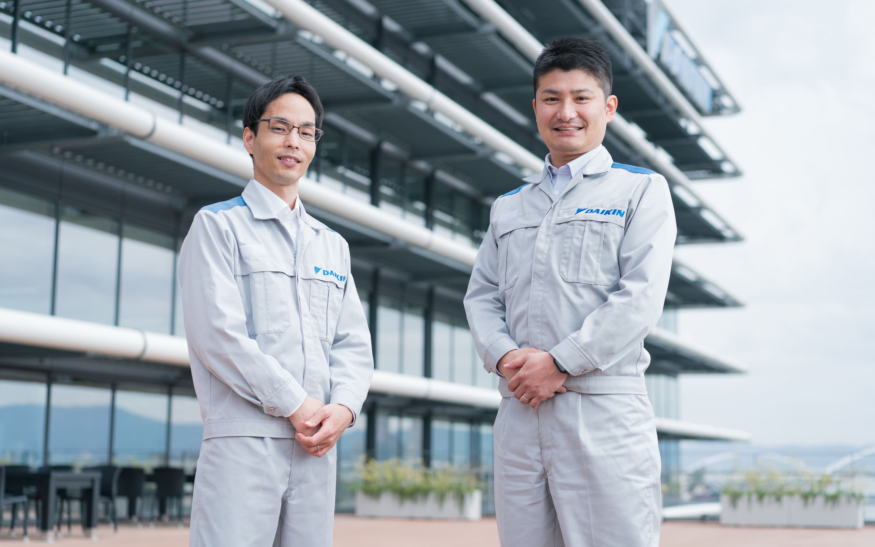 エアコンの圧縮機やファンなどの動作にモータは不可欠。ダイキン工業テクノロジー・イノベーションセンター(TIC)で、高効率なDCリラクタンスモータの開発を担当する平野正樹さんと中祥司郎さんは新卒で入社してキャリア10年程になる中堅エンジニアだ。モータに対する課題は時代とともに変わっているが、お二人のモータ開発への取り組みについて伺った。